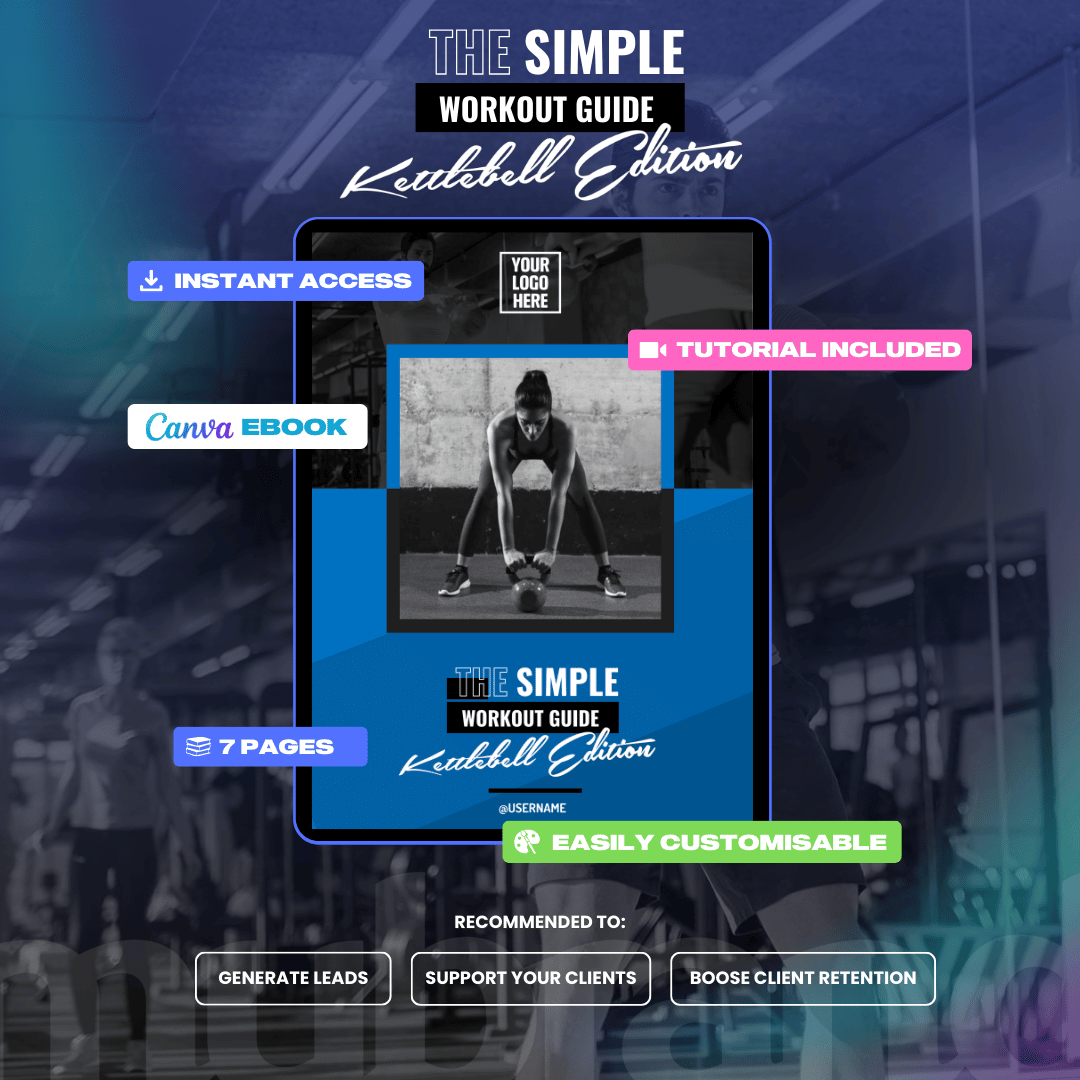 Creating quality handouts takes time. This 7-page Kettlebell Guide includes 5 bodyweight workouts with kettlebell options and modifications for all levels. It’s perfect for educating clients on effective home training and can double as a lead gen tool, ready to use, saving you hours of content creation.