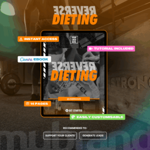 Some topics need guides clients can read at their own pace, but who has time to create them? This eBook explains how to navigate Reverse Dieting, covering when to end dieting, progress checks, and adjusting nutrition for success. Ready-made and time-saving, it’s perfect to share with clients and doubles as an effective lead generation tool.