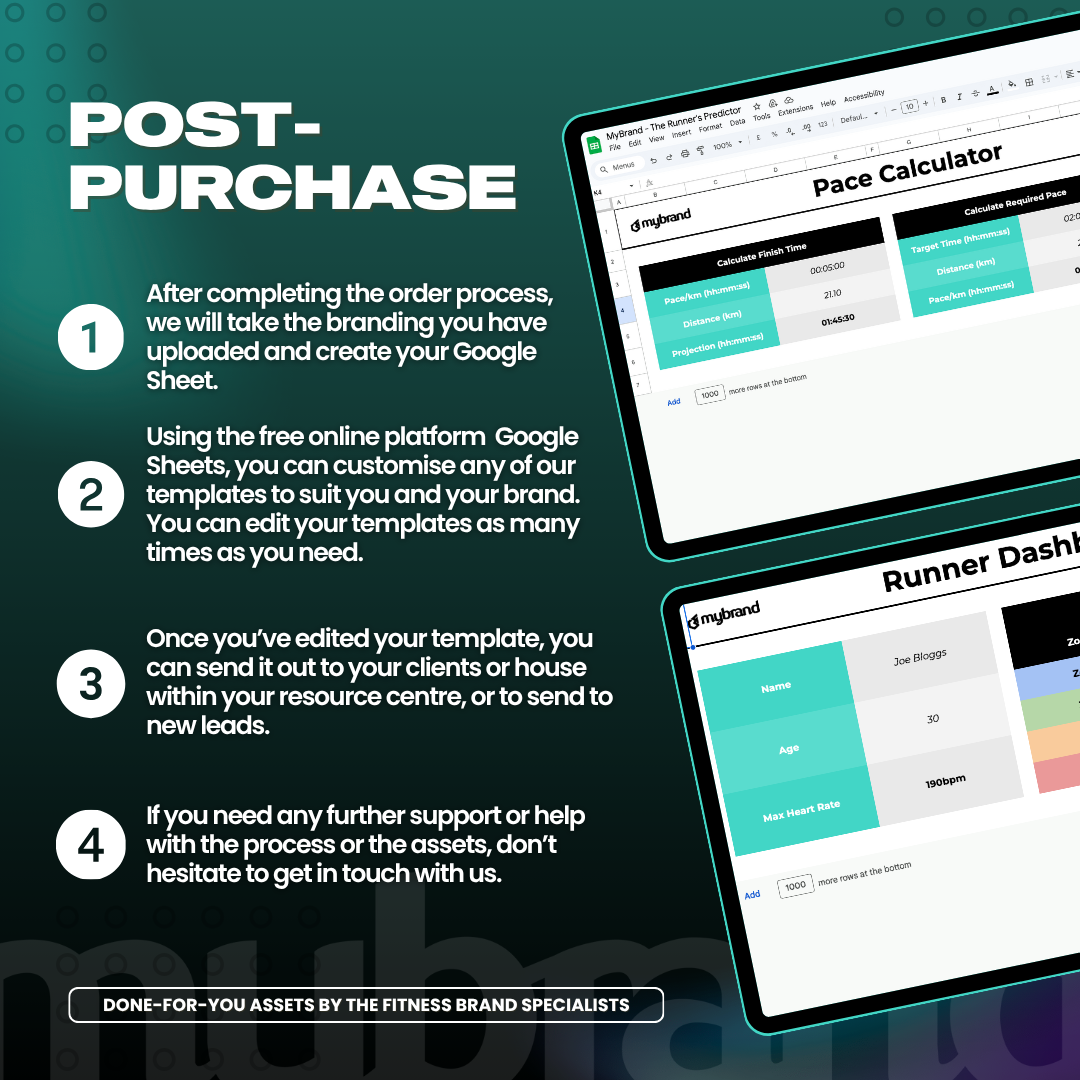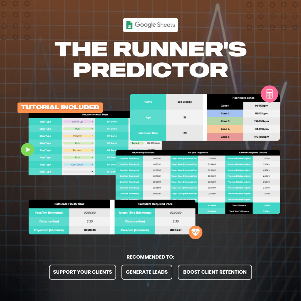 Do your clients have events coming up that they need to work out run paces for? This Run Pace Calculator is a great tool to work out projected finish times and required pace. The Google Sheet is very user friendly and only required small amounts of input.