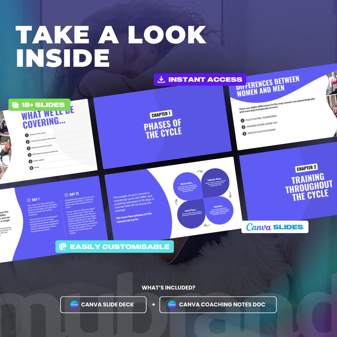 Don’t have time to create professional looking presentations? This done-for-you slide deck is an educational deliverable that you can offer as a lead generation tool, or a client resource. This slide deck is done for you covering your check in process. This slide deck pulls information from our popular ‘Female HealthFemale Health‘.