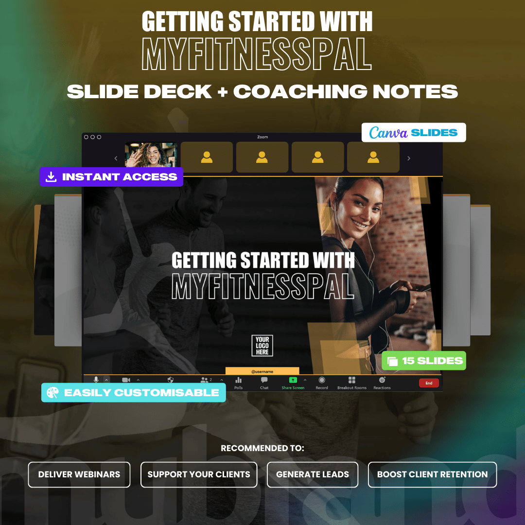 Don’t have time to create professional looking presentations? This done-for-you slide deck is an educational deliverable that you can offer as a lead generation tool, or a client resource. This slide deck is done for you covering your check in process. This slide deck pulls information from our popular ‘MyFitnessPal Guide‘.